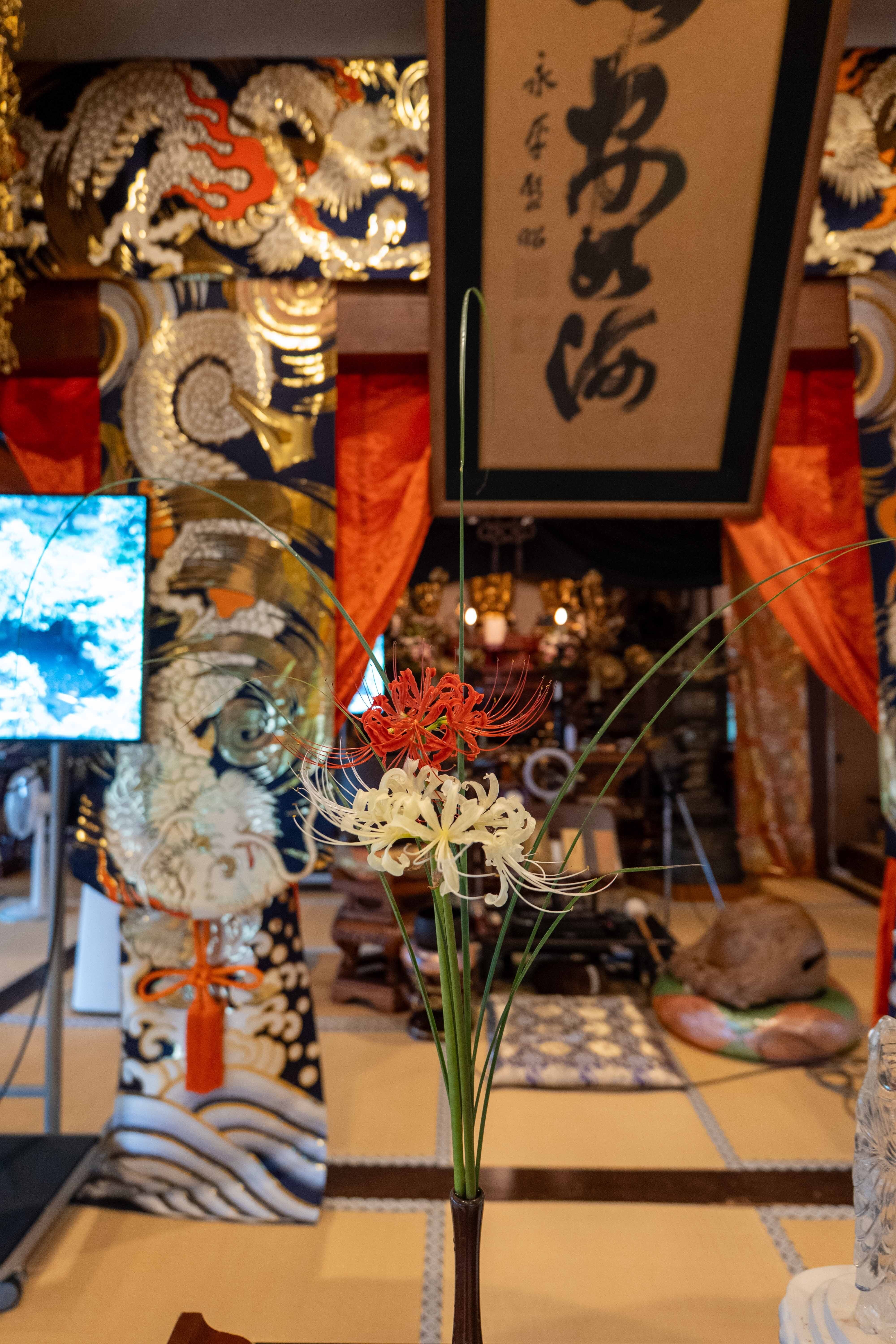 10月の坐禅会を彩る ― 彼岸花とススキの葉 今年の秋は、少し不思議な季節になりました。 鮮烈な赤と清らかな白。 |