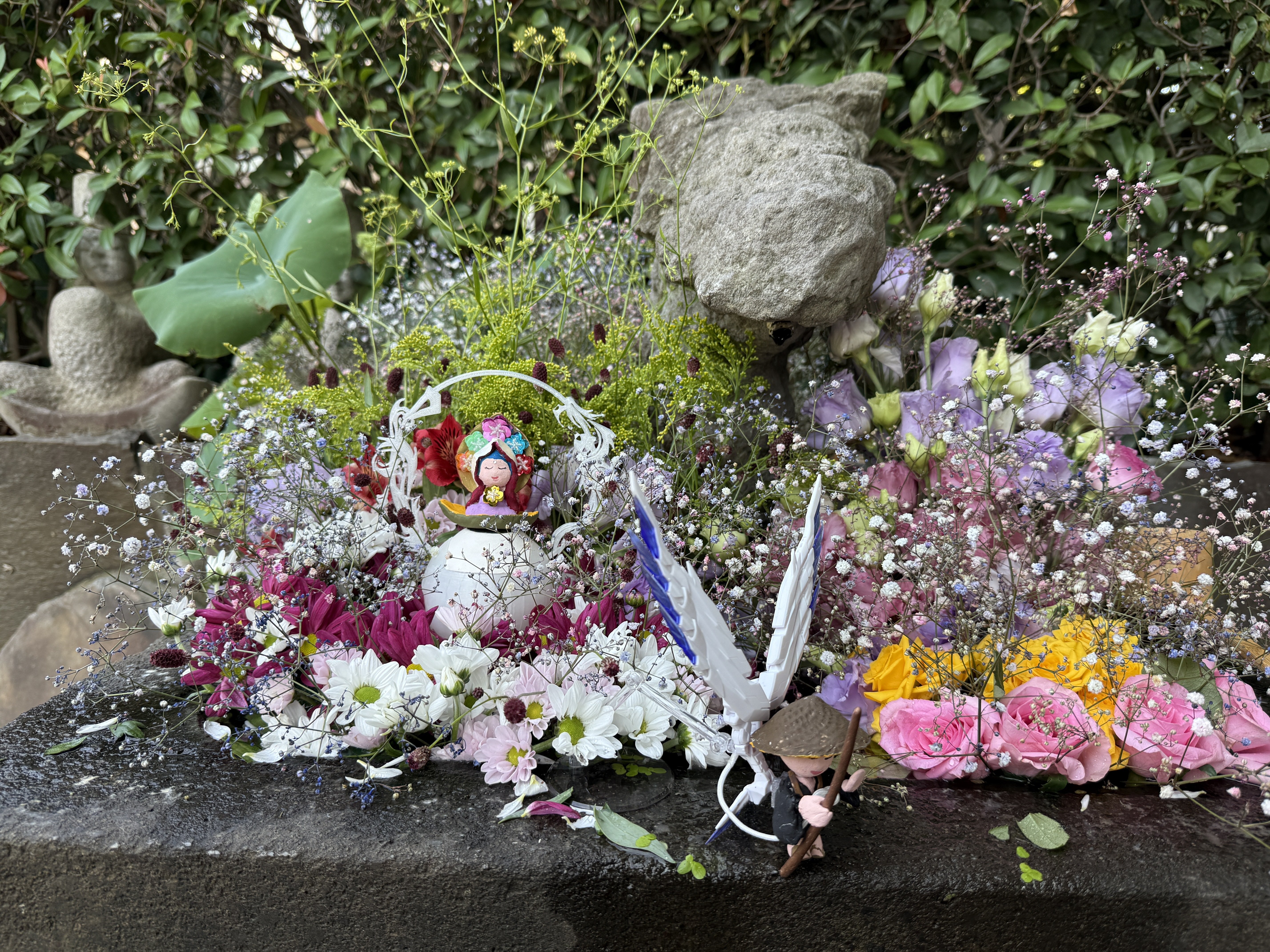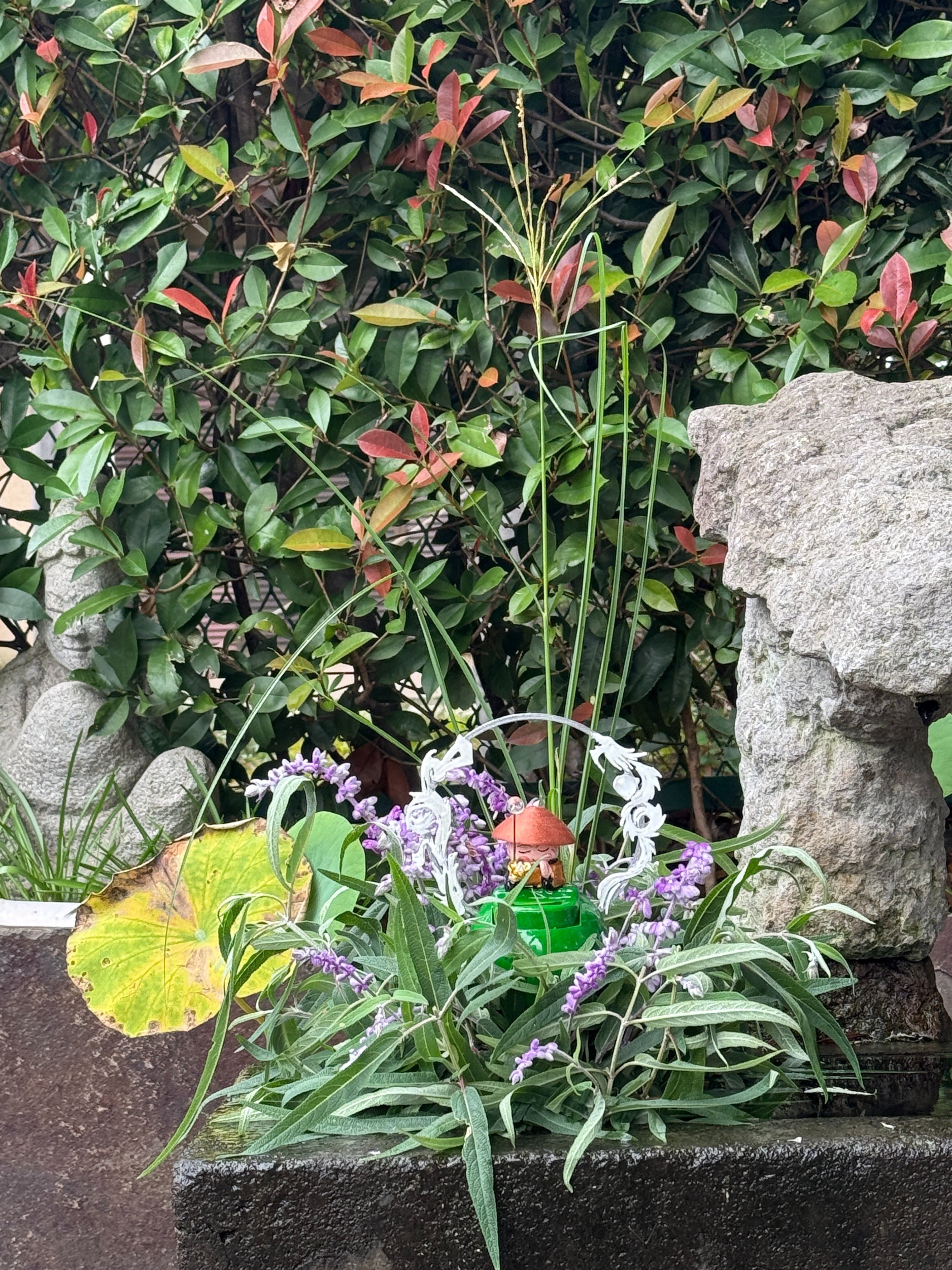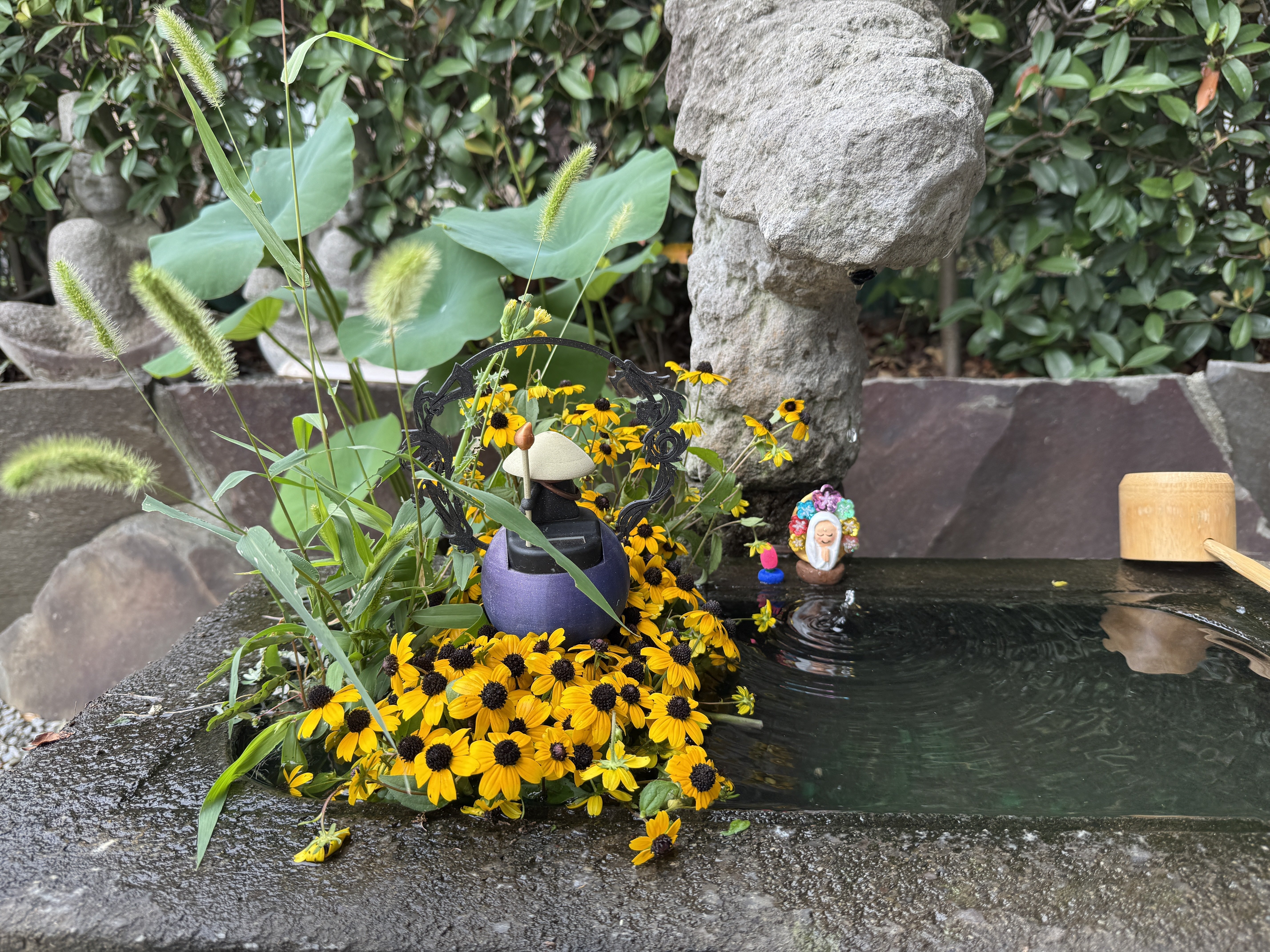 ― 7月24日から10月3日までの彩り ― しばしの夏休みをいただいていた花手水屋。 ここに、その足跡をまとめて記します。 8月1日 蓮のひらき![]() 花手水の背後に、ひときわ凛と咲く蓮の花。 8月2日 ミソハギを添えて![]() 紫の小花、ミソハギをひと枝。 8月5日 大施餓鬼会に備えて![]() ふじ生花店で色とりどりの花を求め、 8月9日 野の花仕立て![]() 三つ葉オオハンゴンソウとエノコログサ。 8月27日 霞の雲![]() ふじ生花店で選んだ花々に、カスミソウをたっぷりと。 9月2日 秋の野の花![]() 境内に咲いた三つ葉オオハンゴンソウやエノコログサ、 9月17日 華やぎの一日![]() この日はネットフリックスの撮影。 10月2日 秋の野にて![]() 境内のハナニラとツユクサを摘み、 夏から秋へ、移ろいゆく時間を花と水に映して。 |