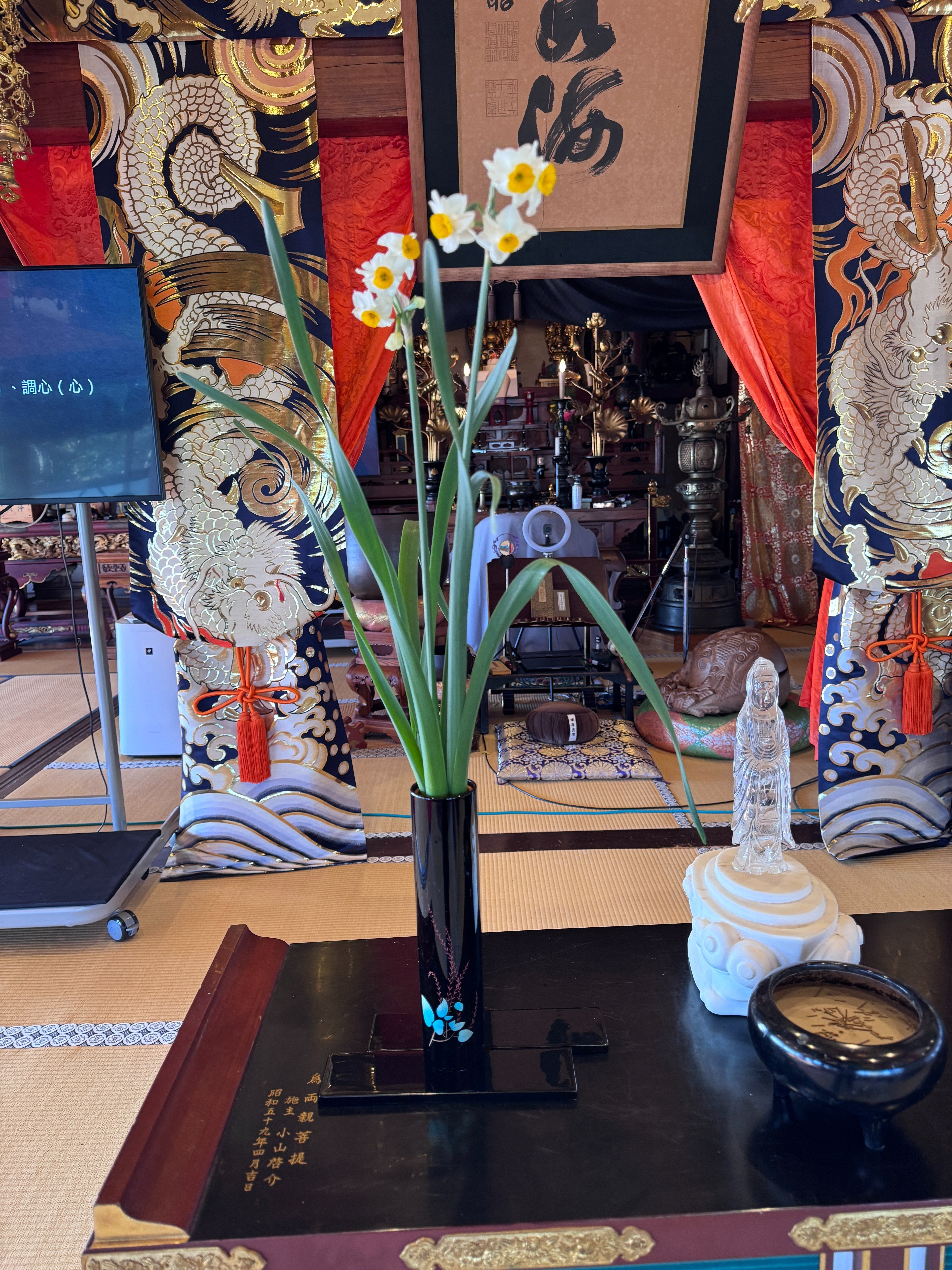令和6年1月6日![]() 令和6年1月の御朱印は水仙なので、裏庭のすいせんを生けました。 |